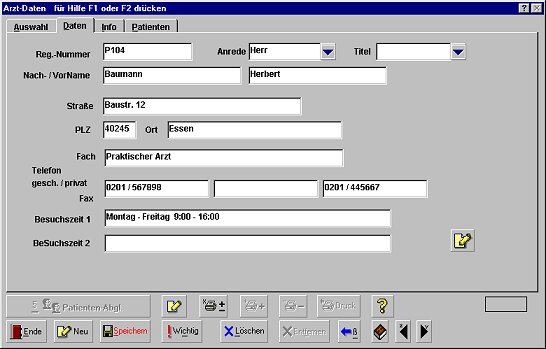 Ärzteerfassung besteht aus einer normalen Datenerfassung
